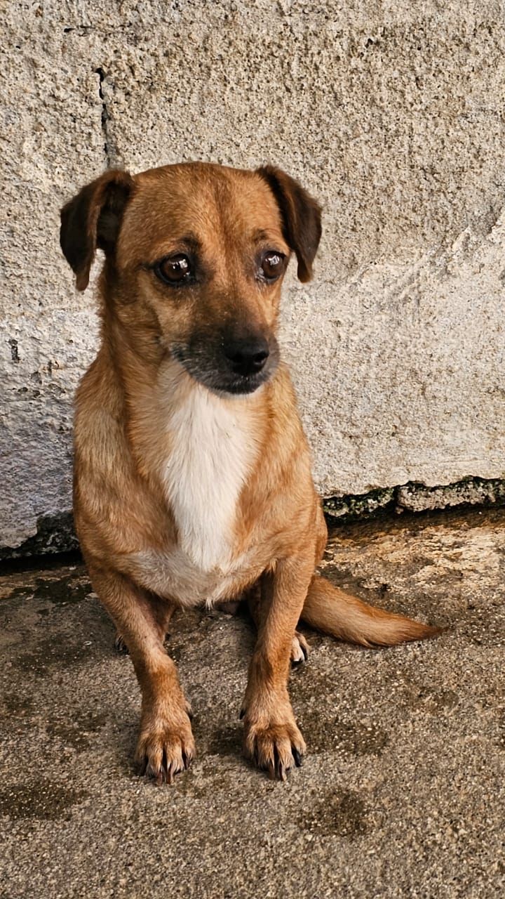 Mischlings Hündin ca. 5 Jahre alt (Stand Okt. 2025), ca. 40 cm groß.
